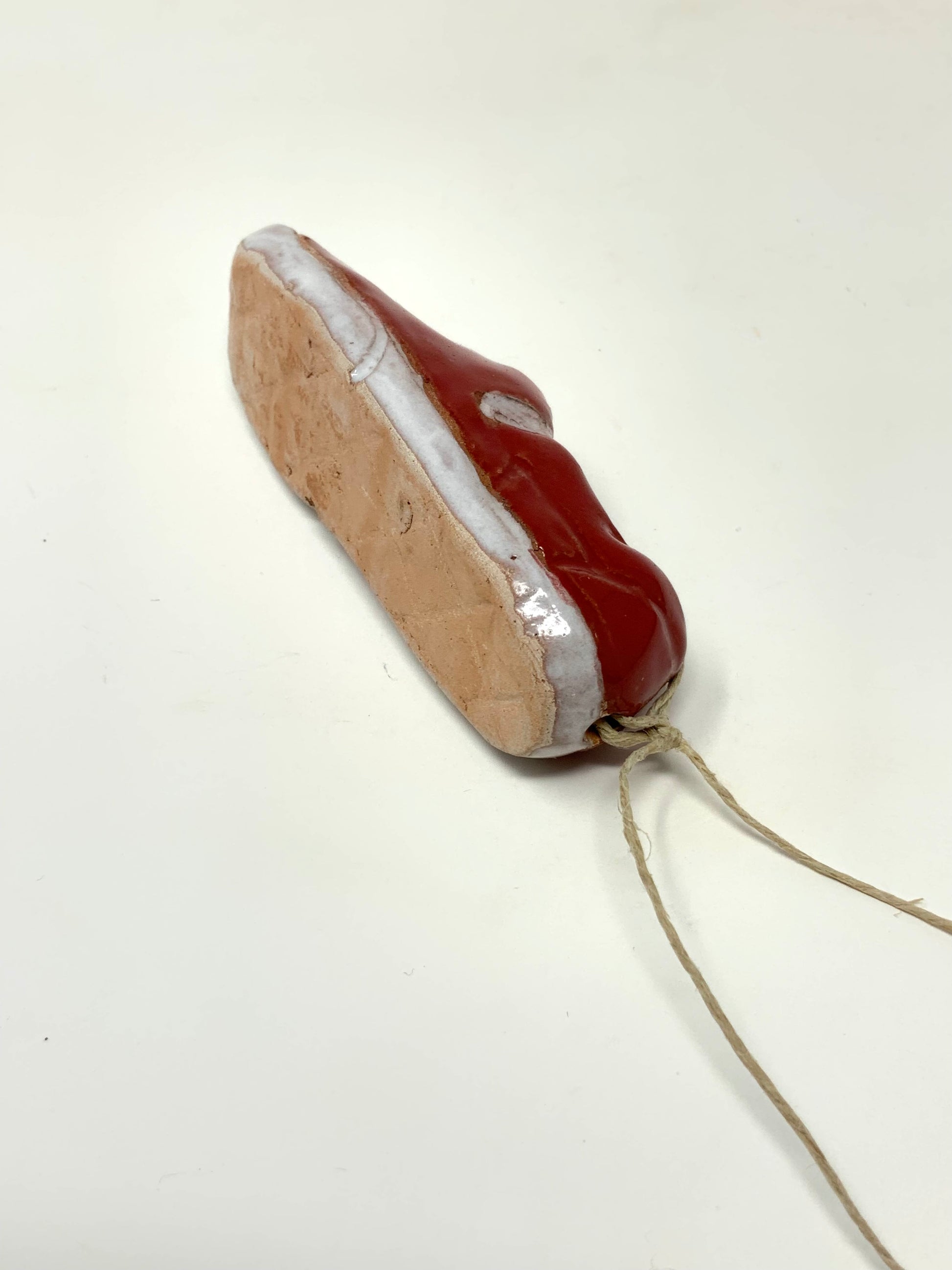 An homage to a California classic! Terracotta shoe charm. Approximately 3" long x 1" wide x 1" high.