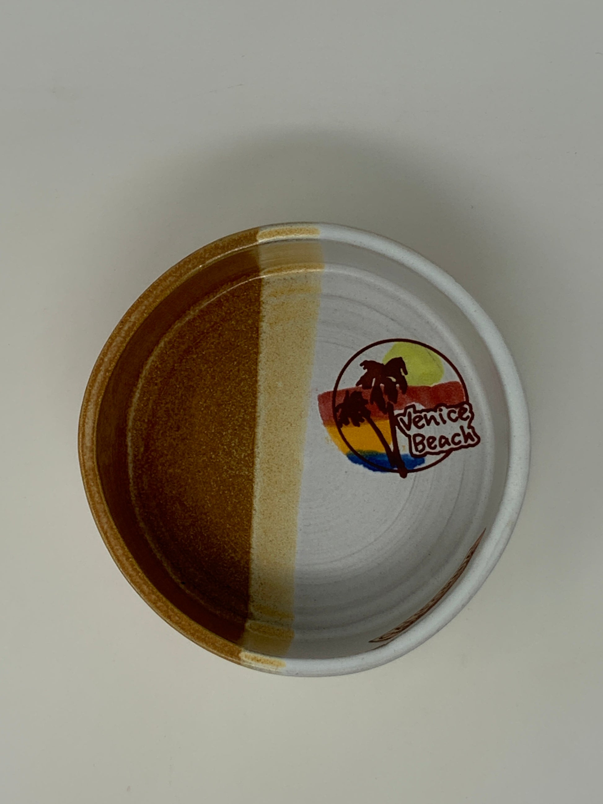 Bringing the Retro Sticker Realness. This stoneware bowl is approximately 7.5” diameter x 3.5” high. Perfect for your (small) beach dog
